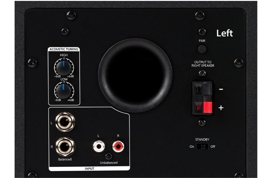 Loa trang bị đầu vào TRS cân bằng, ¼ inch; đầu vào âm thanh nổi không cân bằng, ⅛ inch và RCA; và bộ khuếch đại tai nghe âm thanh nổi tích hợp với đầu ra ⅛ inch ở mặt trước giúp mọi nhu cầu kết nối được đáp ứng nhanh chóng.