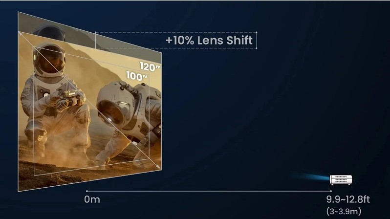 Bên cạnh đó, máy chiếu còn có tính năng tự động khử lệch hình Keystone giúp duy trì khung hình chuẩn dù từ góc chiếu nào. Điều này mang lại sự tiện lợi cho người dùng, giúp bạn dễ dàng trải nghiệm nội dung mà không cần phải mất nhiều thời gian điều chỉnh.